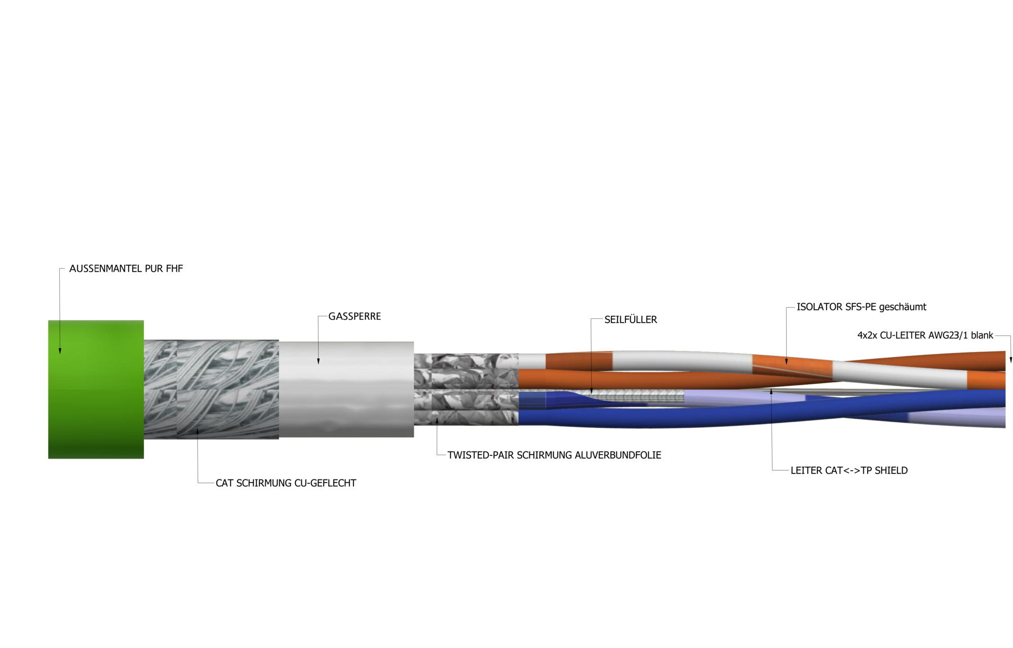 Das SKD02-T ist ein Systemkabel zum Anbinden digitaler Kamerasysteme (System Kabel Digital 02-T) und wurde für die Verwendung in explosionsgefährdeten Bereichen entwickelt. Es entspricht den Anforderungen an Kabel und Leitungen gemäß der Norm DIN EN 60079-14. Das Kabel kann mittels geeigneter Kabelleitungseinführung direkt in Räume druckfester Kapselung eingeführt werden. Das SKD02-T ist ein Highspeedkabel für industrielle Ethernetanwendungen und geeignet zur festen Installation in trockenen, nassen oder feuchten Räumen. Das Kabel erfüllt die Übertragungscharakteristika der Kategorie 6A nach IEC 61156-5 Ed. 2 sogar bei -60°C. Es zeigt eine exzellente Belastbarkeit hinsichtlich mechanischer Beanspruchung, gute Beständigkeit gegen Sonnenlicht, Öl und Schmierstoffe und ist halogenfrei.
