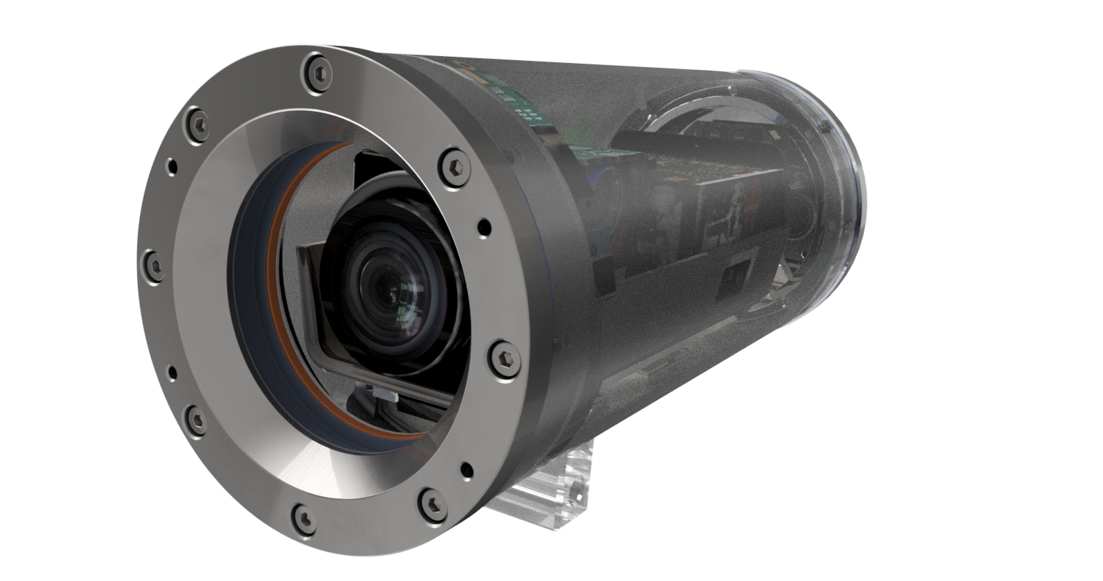 Die speziell konstruierten GYLON-Flachdichtungen (PTFE) machen die Kamera nicht nur wasser- und staubdicht (IP68), sondern auch beständig gegen eine Vielzahl von Chemikalien. Das äußerst robuste, kratz- und schlagfeste Borosilikatglas der Frontscheibe reiht sich nahtlos ein in die Liste hochwertiger Materialien.
